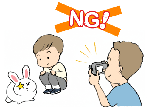 フラッシュは動物の目によくありませんし、驚かせてしまう危険性もありますので、使わないようにしましょう。