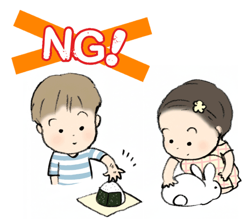 耳に細かい血管が多くあるので、耳をつかんだり持ったりしないようにしましょう。また後ろ脚の力がとても強いので、抱っこはせずに、背中をそっと触るとよいでしょう。