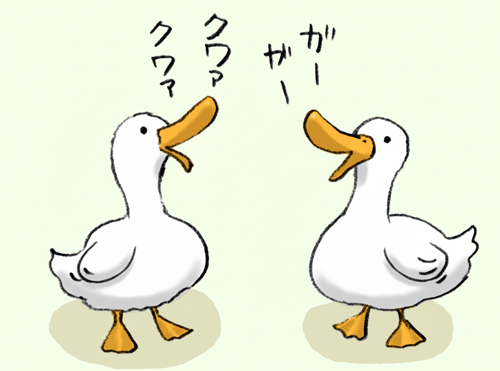 鳴き声をよく聞いてみましょう。「ガーガー」と低くダミ声で鳴くのはメス、「クワァクワァ」と高い声で鳴くのはオスです。