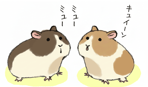 鳴き声に耳を澄ましてみましょう。うれしいとき、お腹がすいているときは、「ミューミュー」や「キュイーン」と鳴きます。