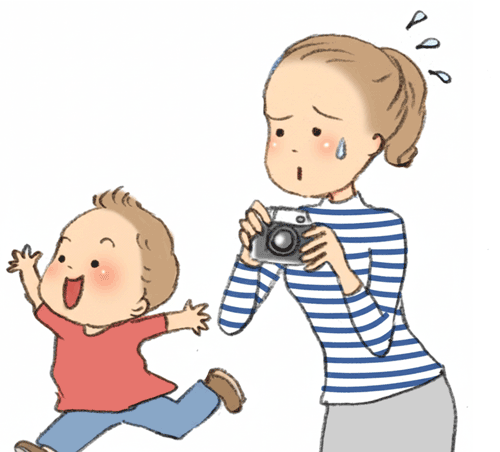 一瞬一瞬で変わる人の表情や動き回る子どもをとらえるときは、たくさん撮った中にベストショットがあるもの。連続して何度も撮りましょう。連写モードがあれば利用しましょう。