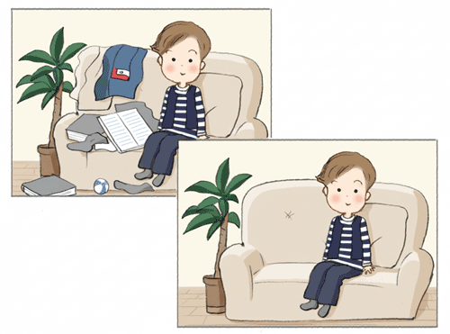 背景に余計なものが写りこまないよう注意しましょう。特に家の中で撮る場合は、洗濯物や雑誌、新聞などの雑多なものは片づけて。